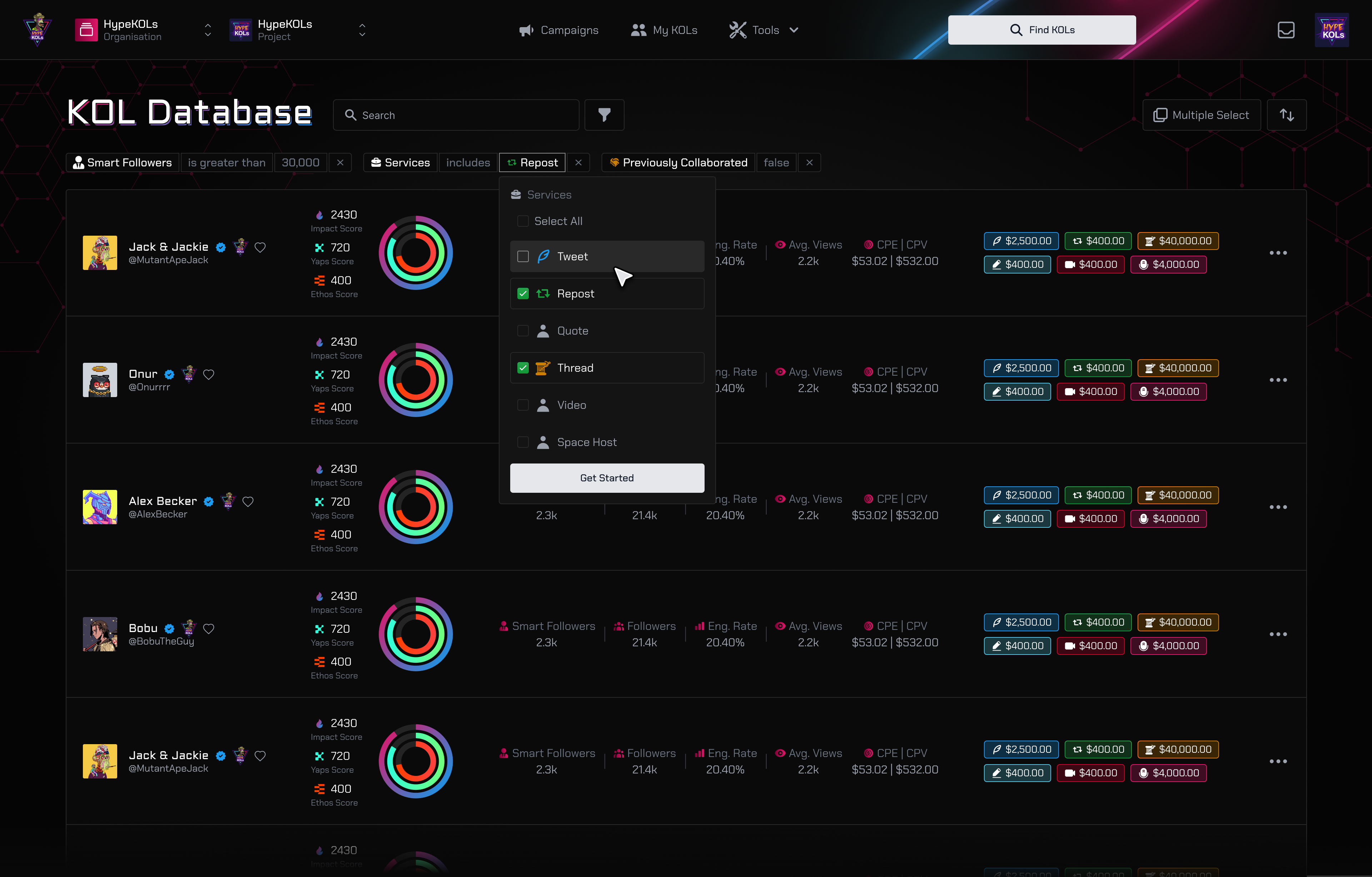Result: Users gained confidence in campaign planning and significantly reduced the time spent finding the right KOLs.